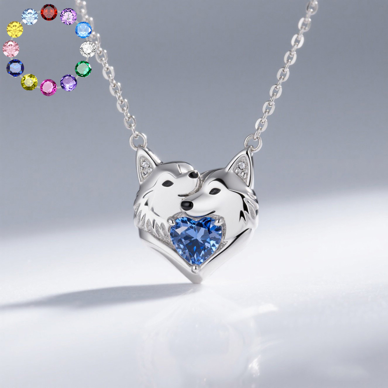 Anyes Cuddling Husky Dogs Embrace Love Heart Birthstone Necklace