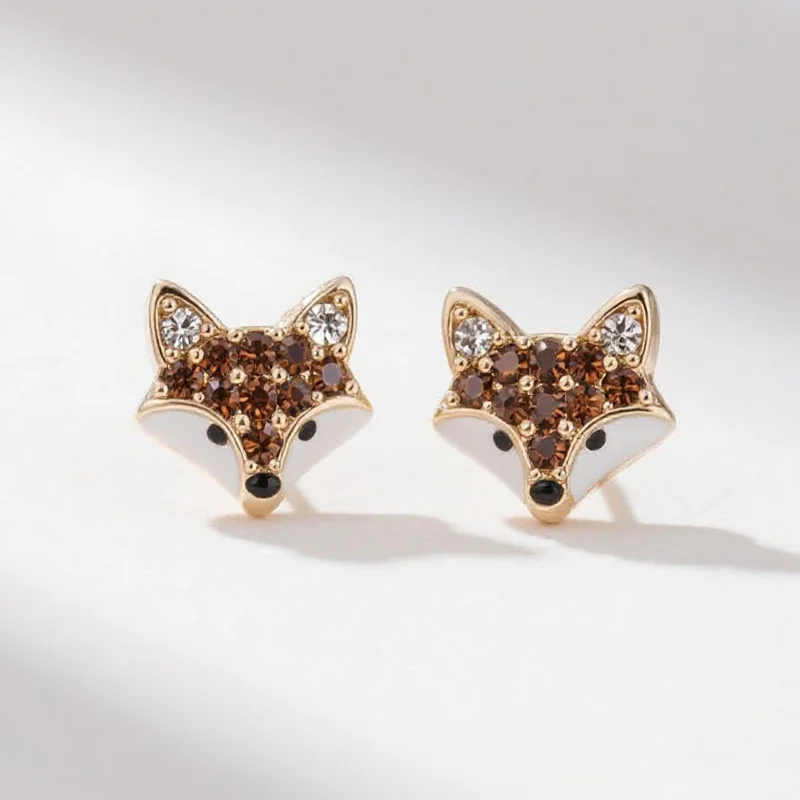 Anyes Animal City Fox Design Coffee Enamel Stud Earrings