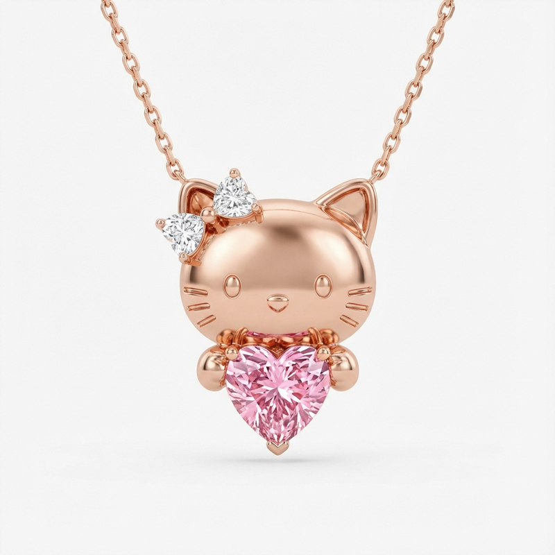 Anyes Bowknot Kitten Cat Embraces Love Heart Necklace