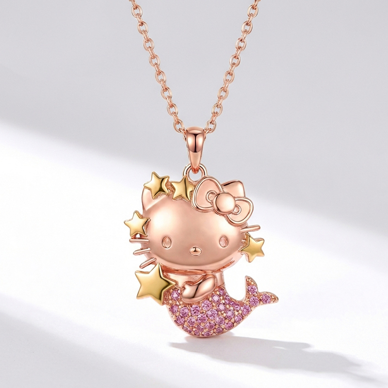 Anyes Bowknot Kitten Cat Mermaid Tail Star Necklace