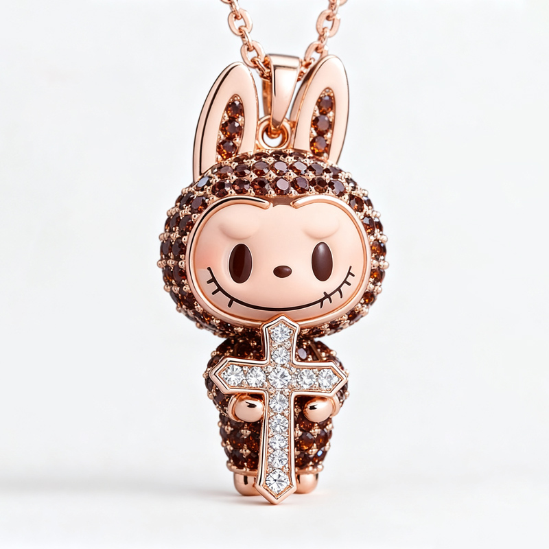 Anyes Bubble Pop Grinning Elf Holding Cross Necklace