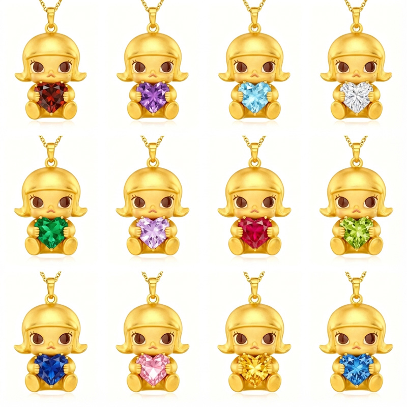 Anyes Bubble Pop Little Girl Embraces Love Heart Birthstone Necklace