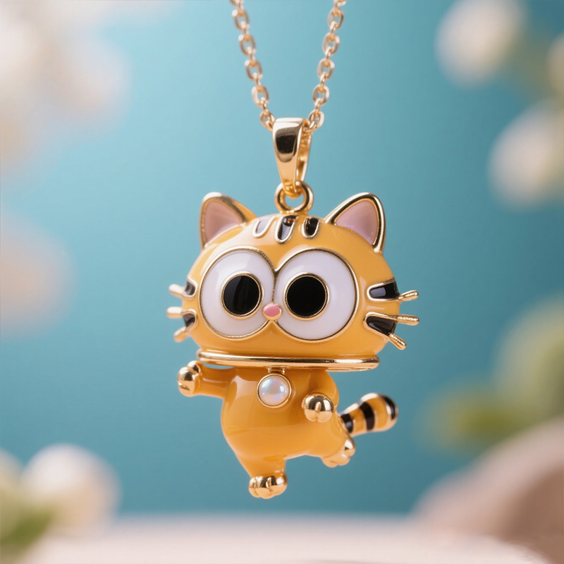 Anyes Cartoon Baby Cat Enamel Necklace Sterling Silver
