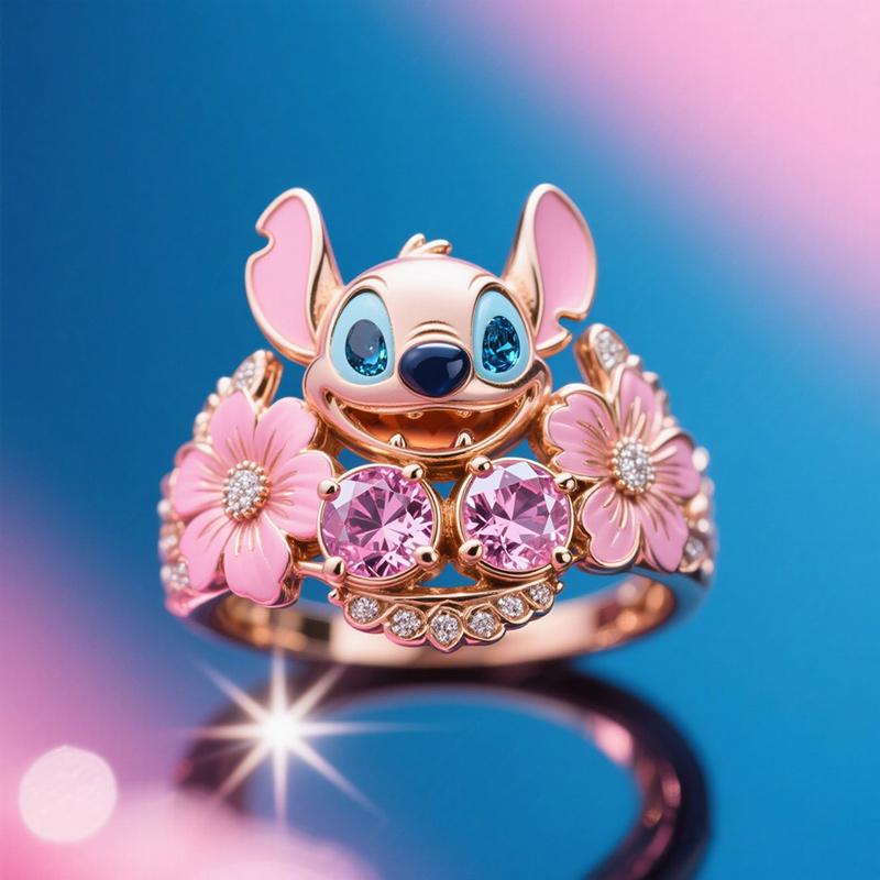 Anyes Pink Enamel Hibiscus Little Monster Inspired Cocktail Ring Sterling Silver