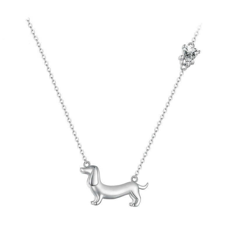 Cute Dachshund Dog Necklace Sterling Silver