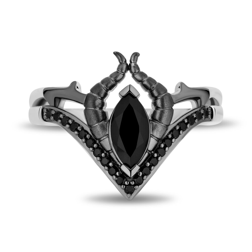 Anyes Evil Queen Black Stone Horn Cocktail Ring Sterling Silver