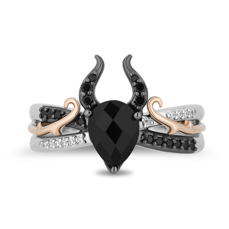 Anyes Evil Queen Two Tone Pear Cut Cocktail Ring Sterling Silver