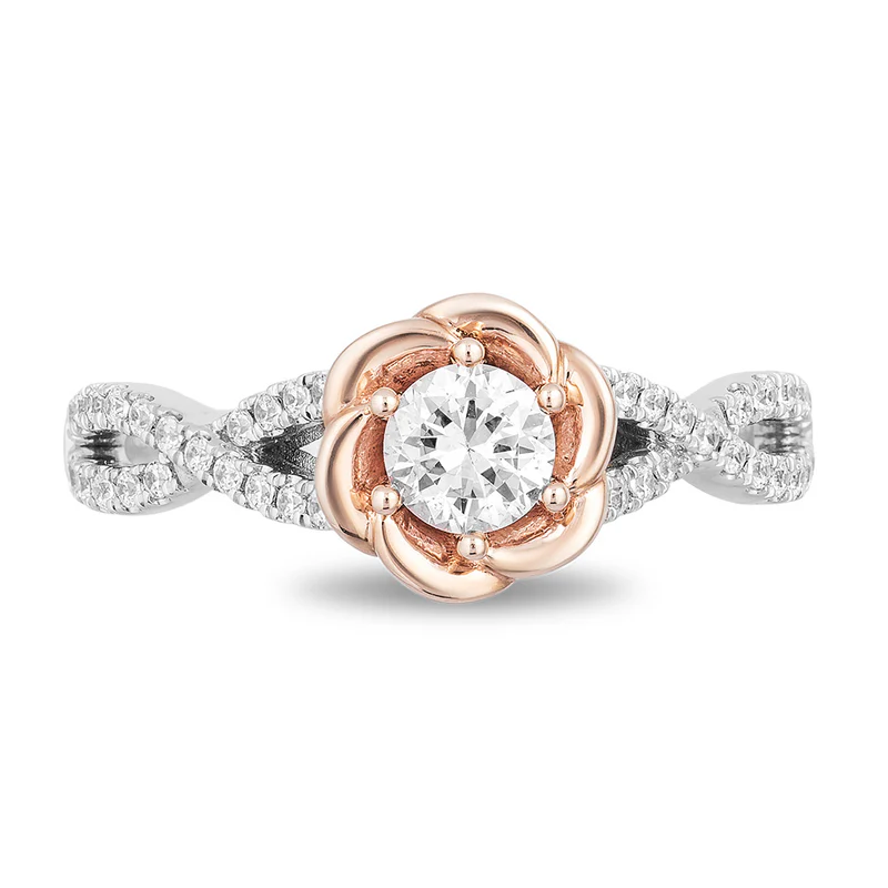 Anyes Rose Gold Rose Design Engagement Ring Sterling Silver