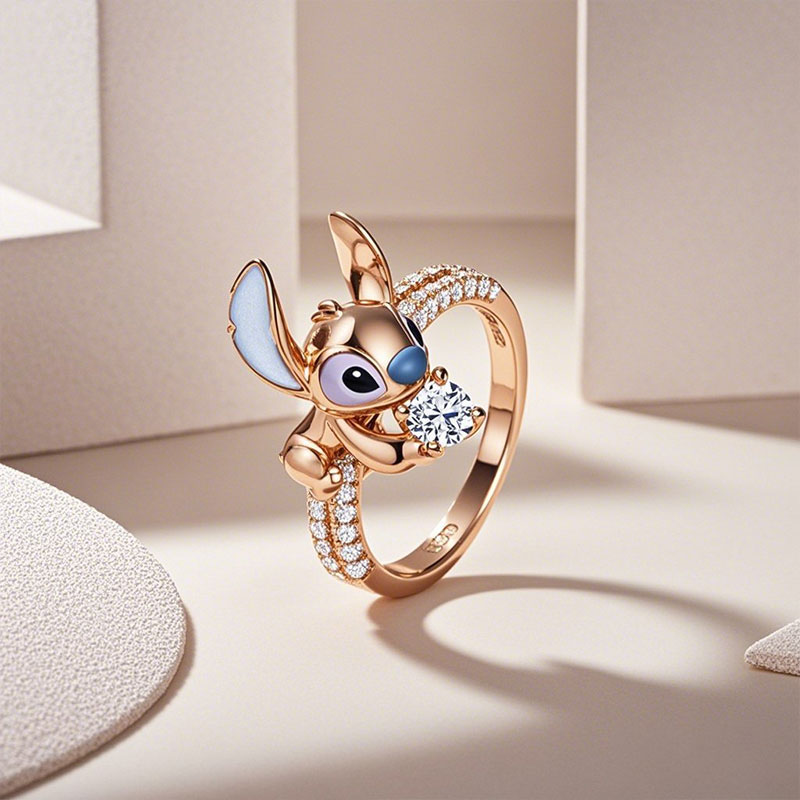 This charming ring features everyone's favorite little monster, who is perched atop a ring holding a dazzling gemstone that takes center stage. The band is set with three rows of elegant pave gemstones, which shimmer and sparkle to perfectly complement the little monster's charm.
