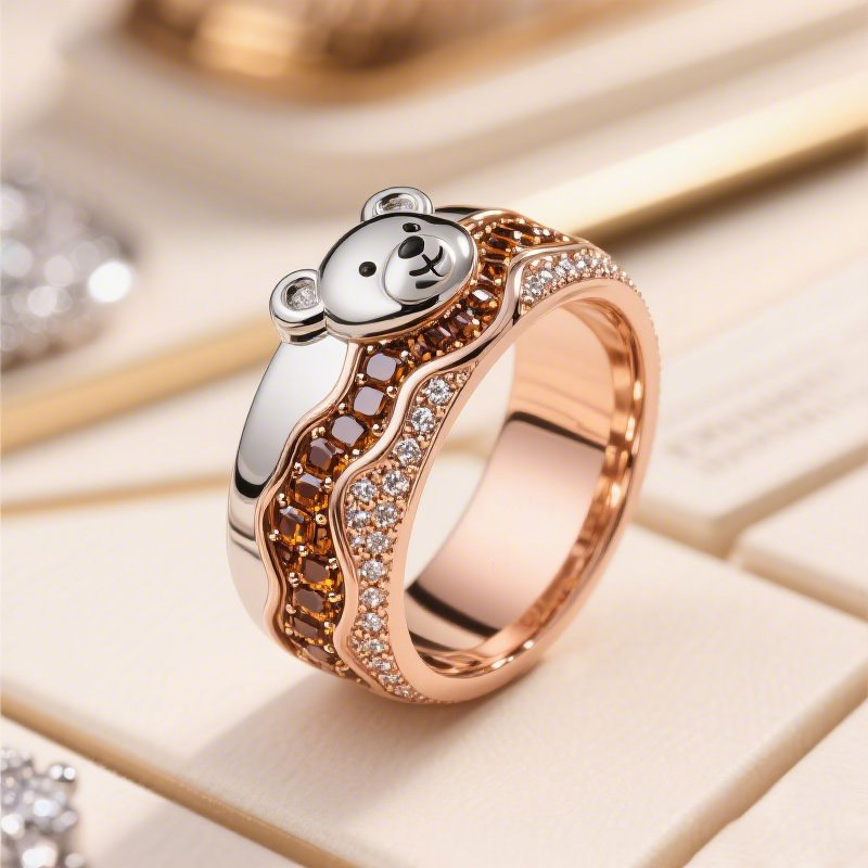 Anyes Two Tone Chocolate Bear Inspired Cocktail Ring Sterling Silver