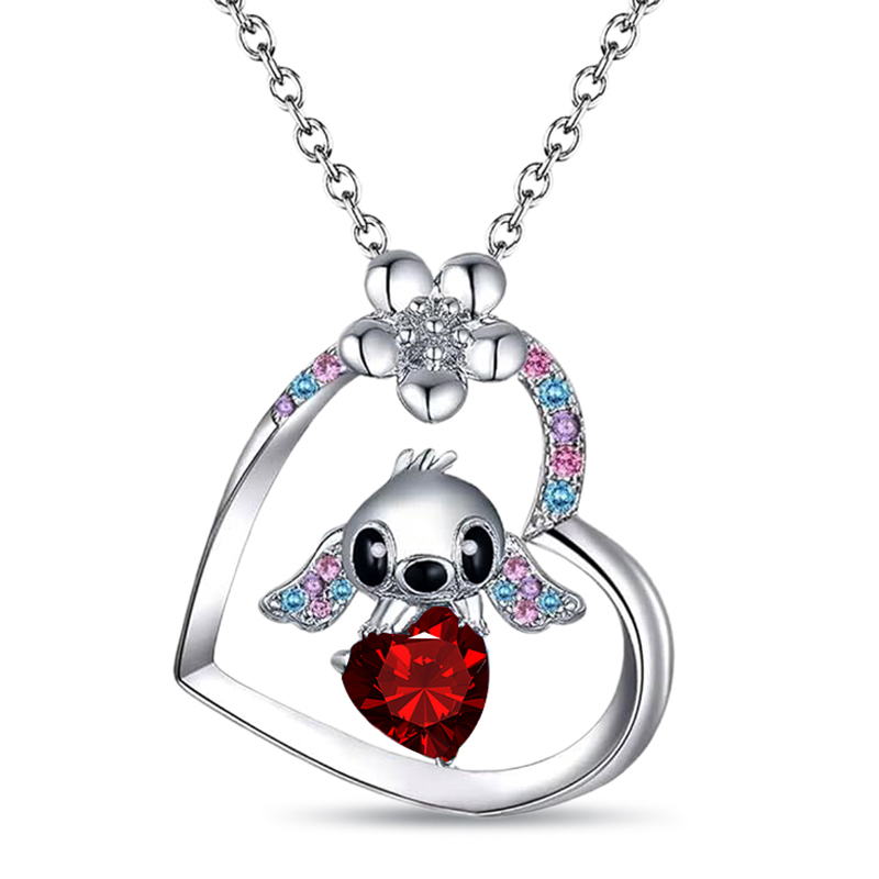 Anyes Cute Monster 12 Birthstones Heart Cut Necklace with Flower Sterling Silver